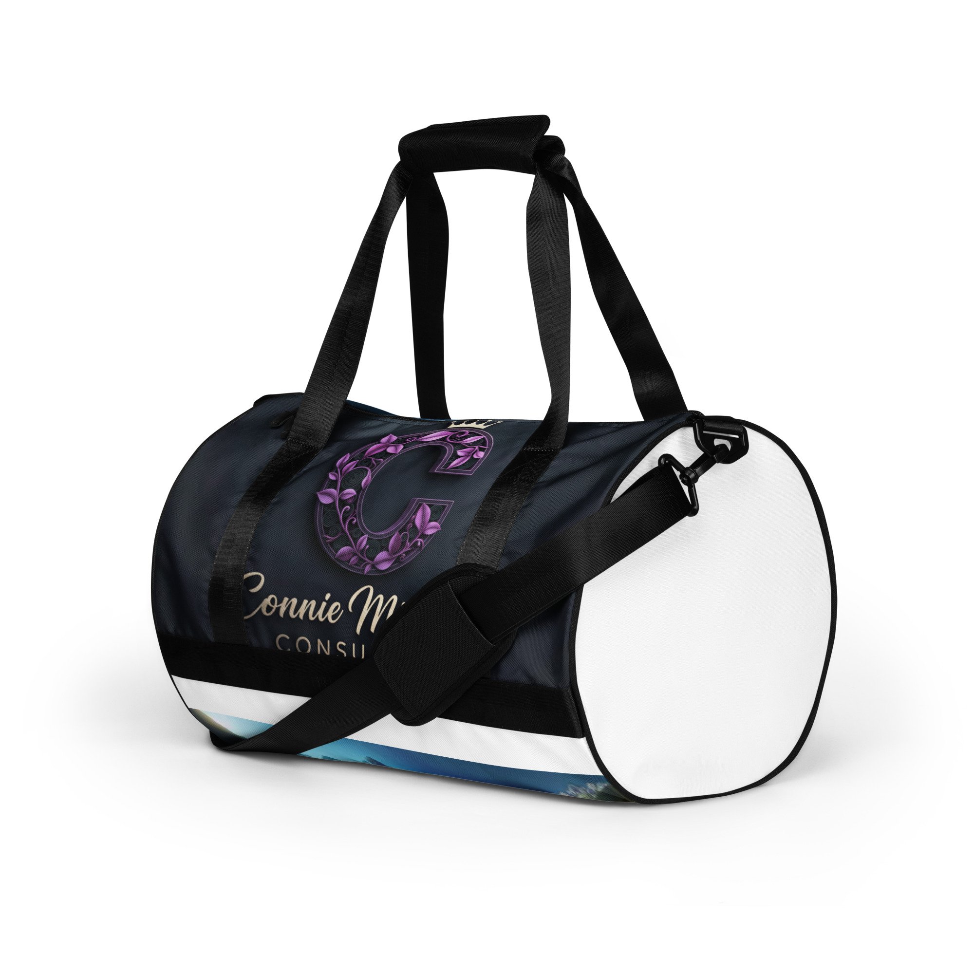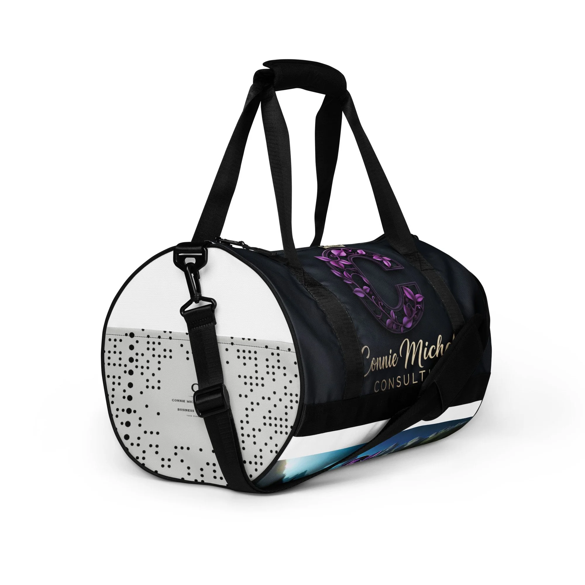 Ready to get your fitness on? Add some punch to pumping iron with this all-over print gym bag. Made from 100% polyester and sturdy, water-resistant fabric, this bag is fun meets function. And it’s got pockets!